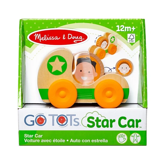 - Drop the double-sided chunky wooden GO Tots disk (2 collectible characters) into the wooden car, and push the car to make the GO Tots spin